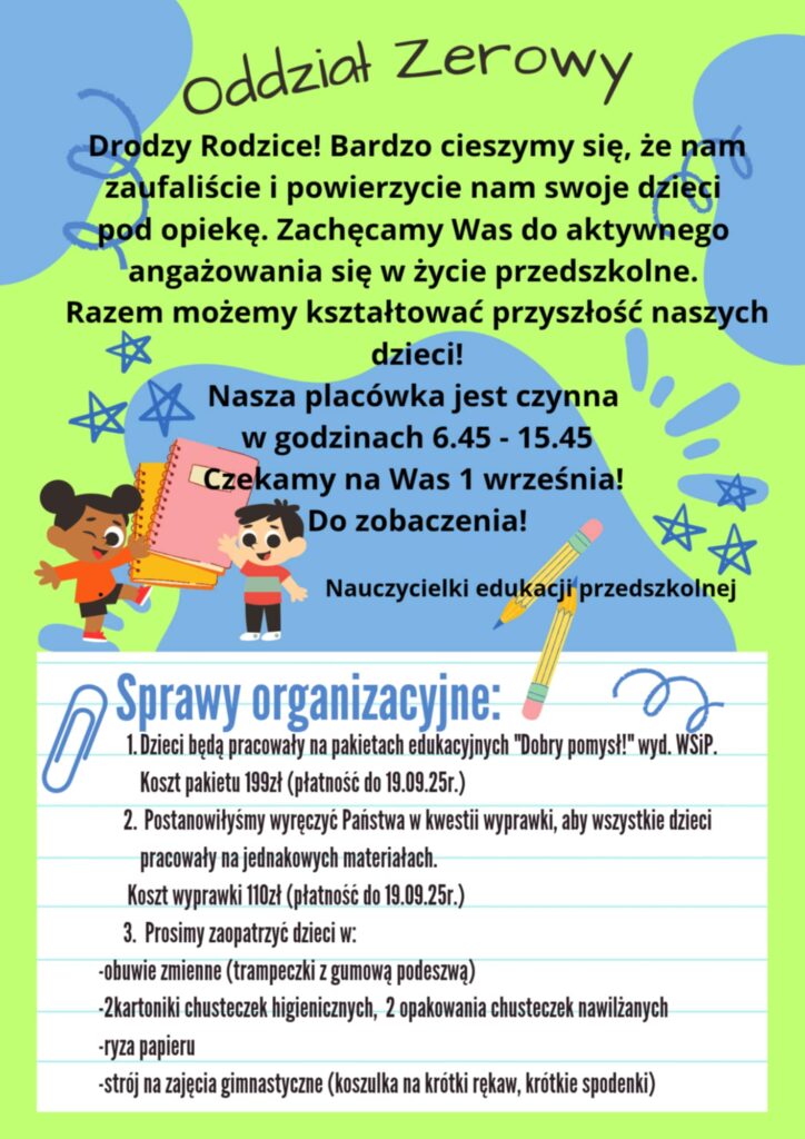 Podejmowanie przez dzieci różnorodnych form pracy (wg indywidualnych potrzeb dziecka), m.in.: zabawy konstrukcyjne, tematyczne, badawcze, ruchowe; prace porządkowe w kącikach tematycznych; zajęcia w ramach pomocy psychologiczno- pedagogicznej (stymulujące, rozwijające funkcje percepcyjno-motoryczne i społeczno- emocjonalne).